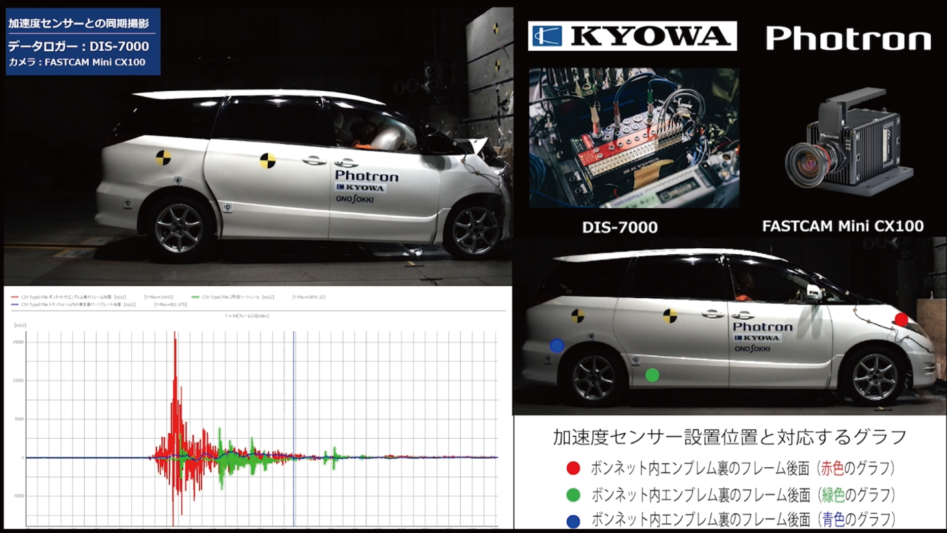 自動車衝突試験|加速度センサーとの同期撮影